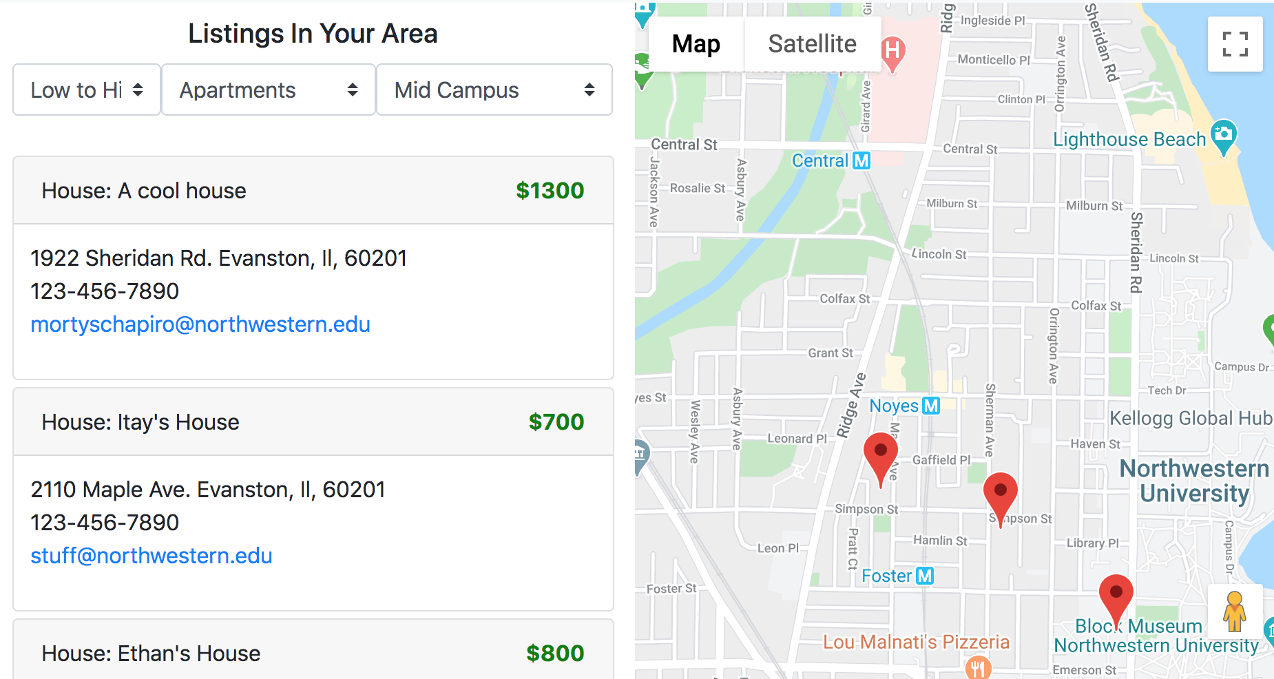 Helping NU students find off-campus housing through a centralized website -- containing listings, contact information, and housing amenities. NU Housing will save students countless hours and make the process of finding housing much easier.