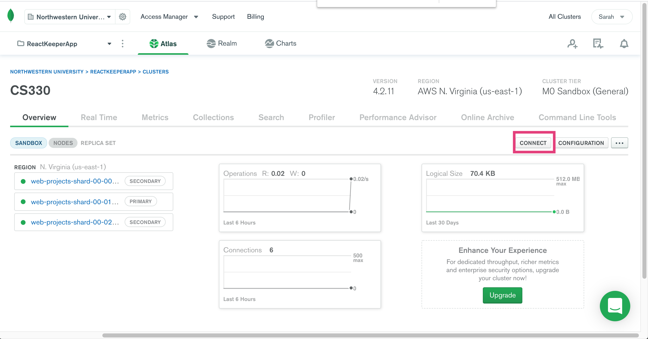 We will use databases stored in this cluster in upcoming labs and homework assignments. Meanwhile, if you are curious about how to interact with MongoDB, take a look at their documentation on CRUD operations (CRUD = “Create, Read, Update, & Delete”).