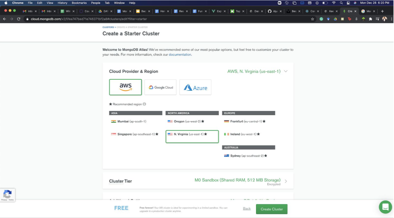 Click on Build a Cluster. Select the free options on the next page.